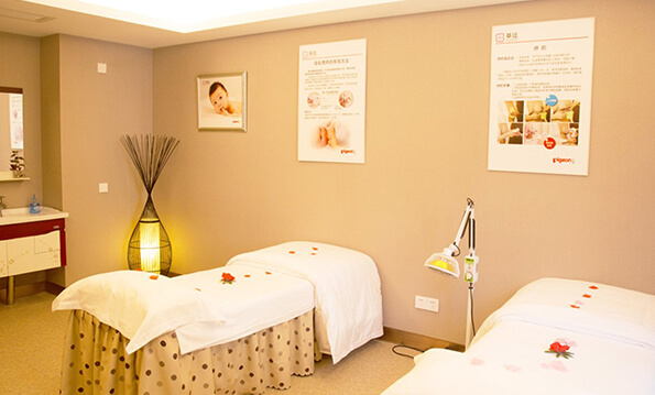 轻装修重体验,在装修风格上营造出一种舒适温馨的住家感,选用纯天然无污染的硅藻泥为墙壁装修材料;床体的高度根据是剖腹产妈妈的平均身高而定,床垫的软硬度是满足产后妈妈的腰背恢复需求。